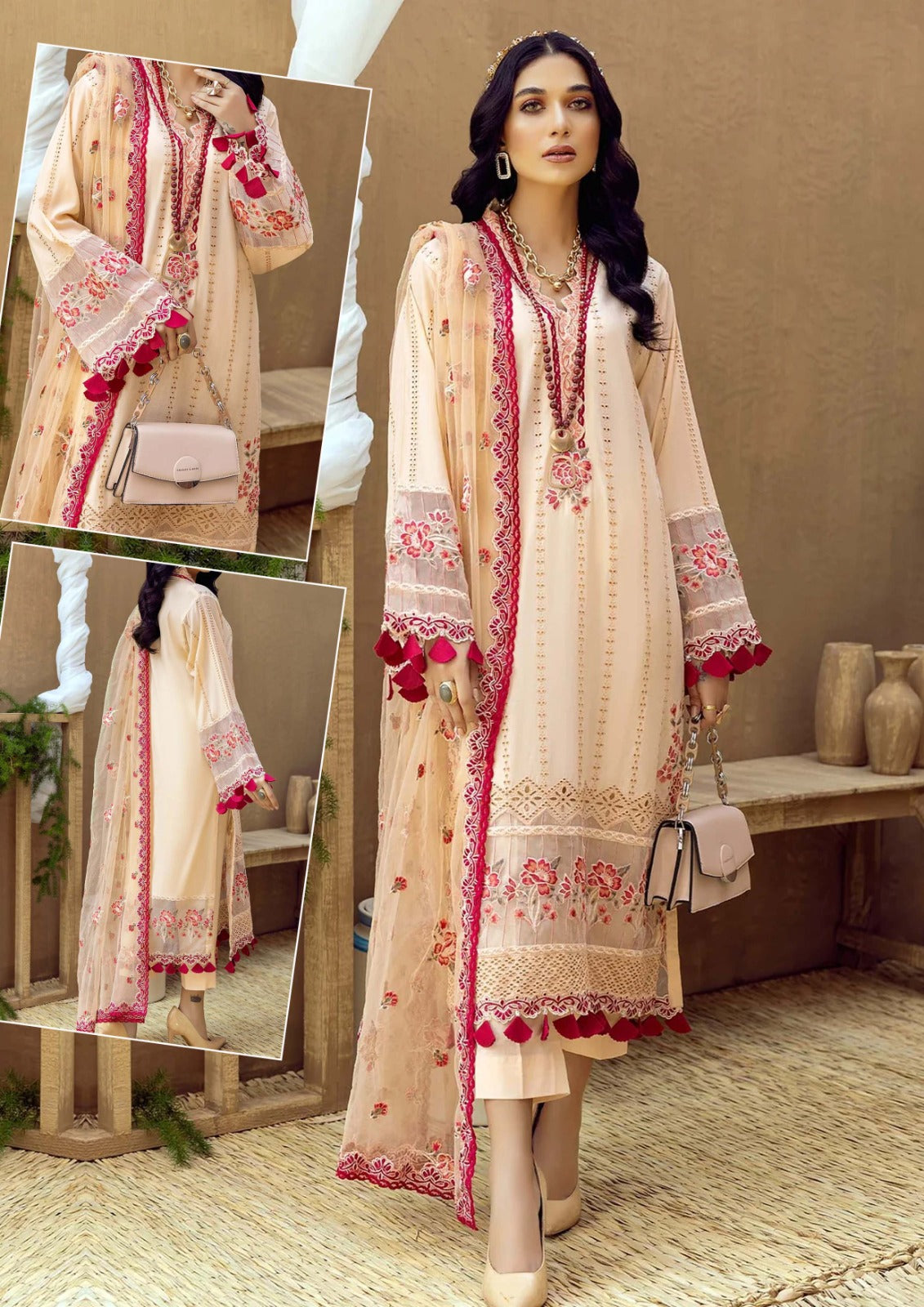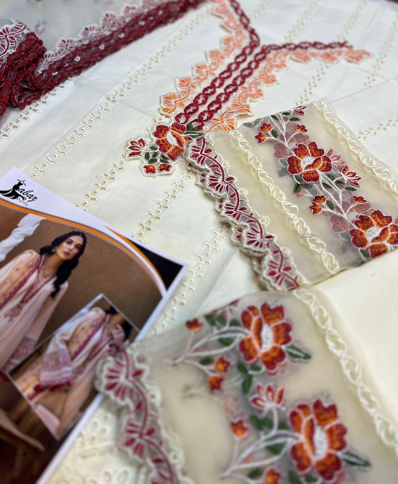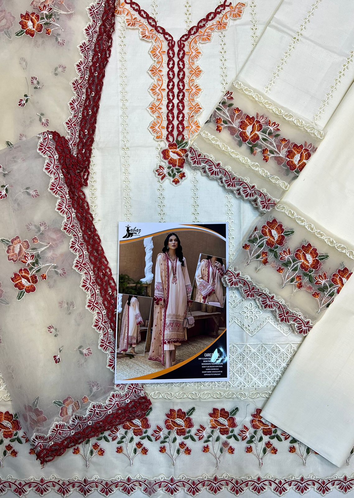 *Soft Cotton fully heavy scifflie embroidered front with neck embroidered lace attach Multi fully heavy embroidered daman boarder*
